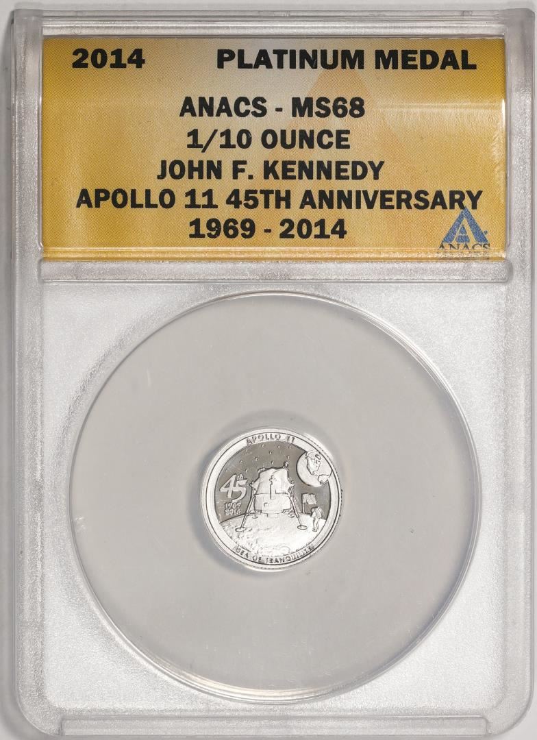 2014 Proof 1/10 oz Platinum JFK Apollo 11 Anniversary Medal ANACS MS68