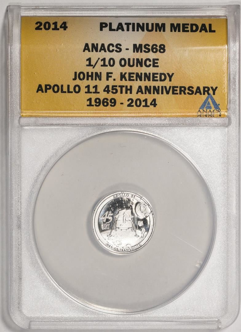 2014 Proof 1/10 oz Platinum JFK Apollo 11 Anniversary Medal ANACS MS68