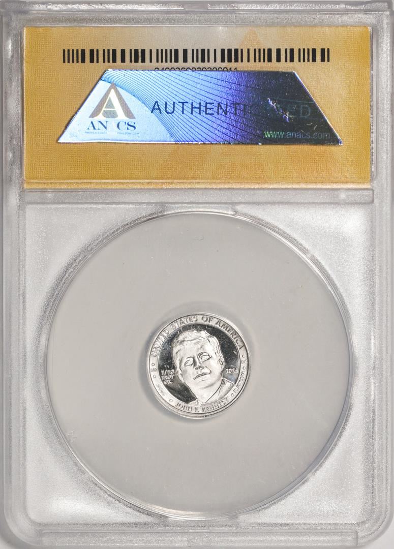 One 2014 Proof 1/10 oz Platinum JFK Apollo 11 Anniversary Medal ANACS MS68. ANACS Certified.