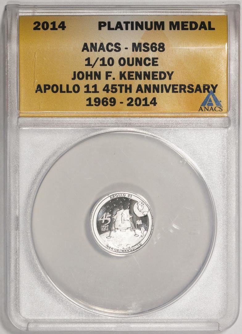 2014 Proof 1/10 oz Platinum JFK Apollo 11 Anniversary Medal ANACS MS68