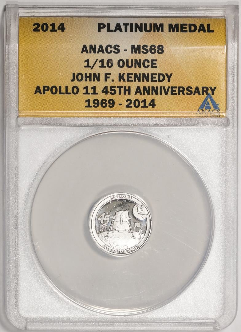 2014 Proof 1/10 oz Platinum JFK Apollo 11 Anniversary Medal ANACS MS68