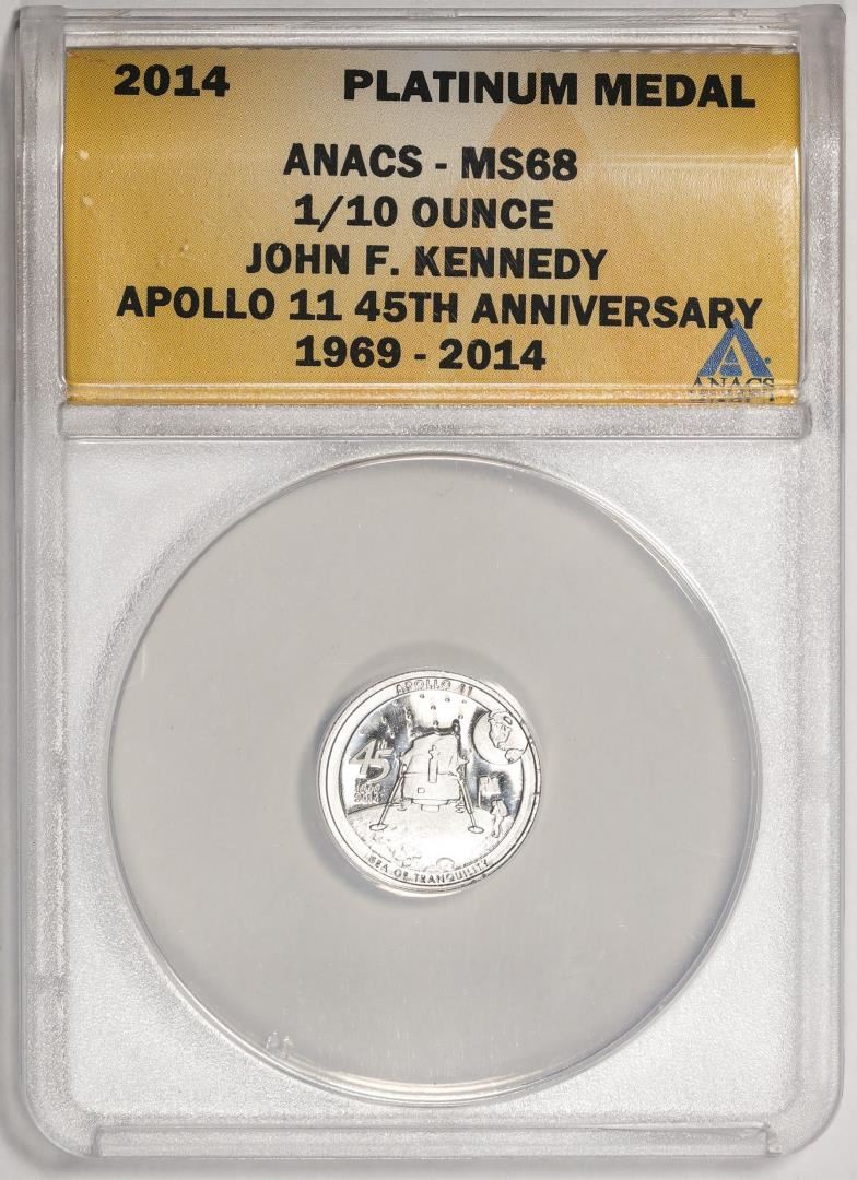 2014 Proof 1/10 oz Platinum JFK Apollo 11 Anniversary Medal ANACS MS68