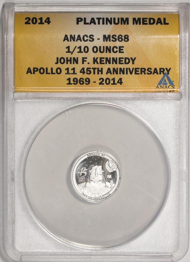 2014 Proof 1/10 oz Platinum JFK Apollo 11 Anniversary Medal ANACS MS68