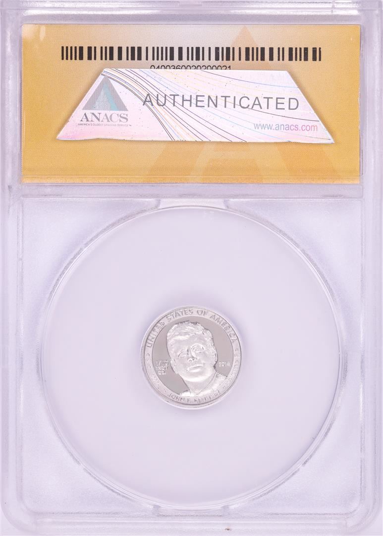 One 2014 Proof 1/10 oz Platinum JFK Apollo 11 Anniversary Medal ANACS MS69. ANACS Certified.