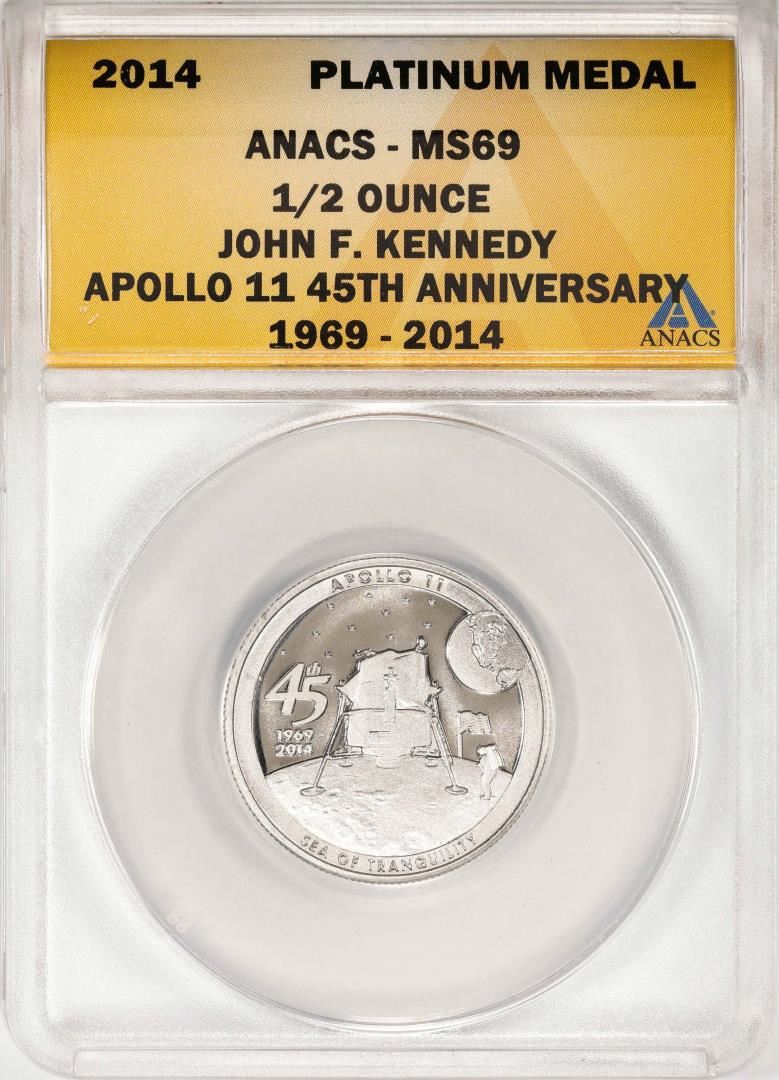 2014 Proof 1/2 oz Platinum JFK Apollo 11 Anniversary Medal ANACS MS69