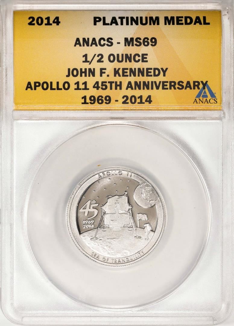 2014 Proof 1/2 oz Platinum JFK Apollo 11 Anniversary Medal ANACS MS69