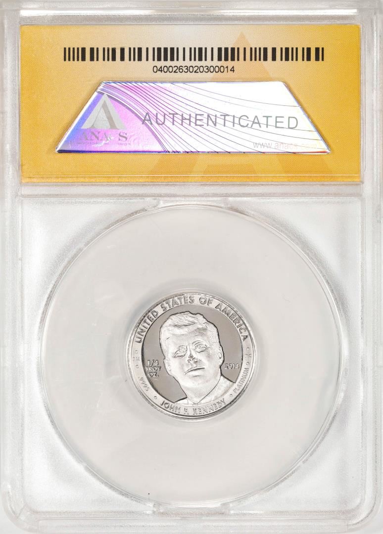 2014 Proof 1/4 oz Platinum JFK Apollo 11 Anniversary Medal ANACS MS68