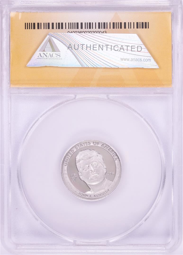 One 2014 Proof 1/4 oz Platinum JFK Apollo 11 Anniversary Medal ANACS MS69. ANACS Certified.