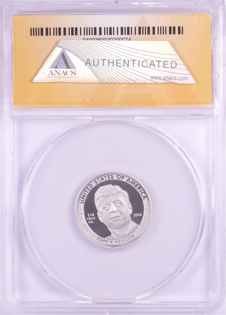 One 2014 Proof 1/4 oz Platinum JFK Apollo 11 Anniversary Medal ANACS MS69. ANACS Certified.