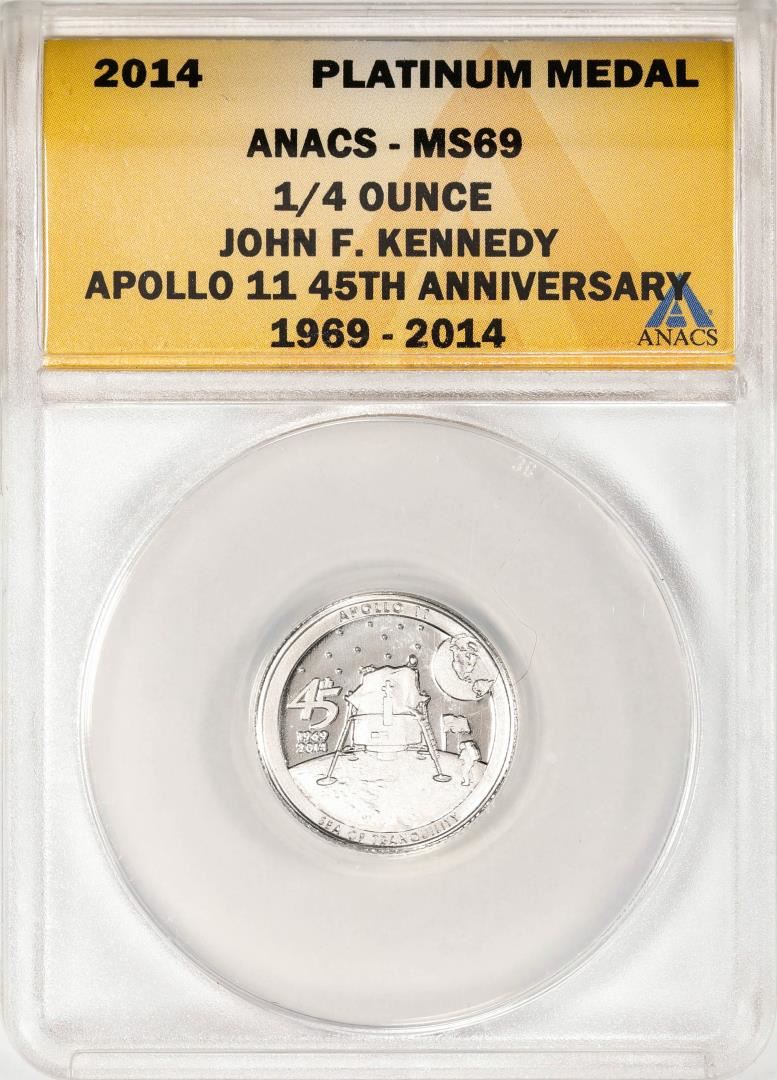 2014 Proof 1/4 oz Platinum JFK Apollo 11 Anniversary Medal ANACS MS69