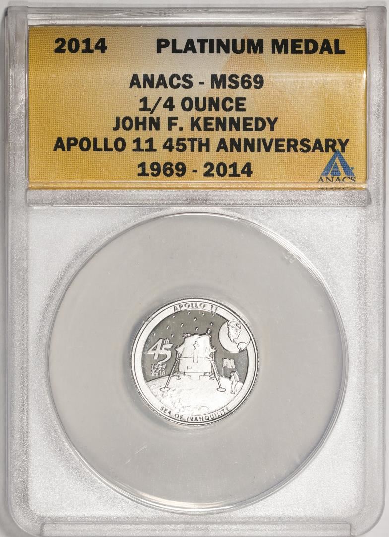 2014 Proof 1/4 oz Platinum JFK Apollo 11 Anniversary Medal ANACS MS69