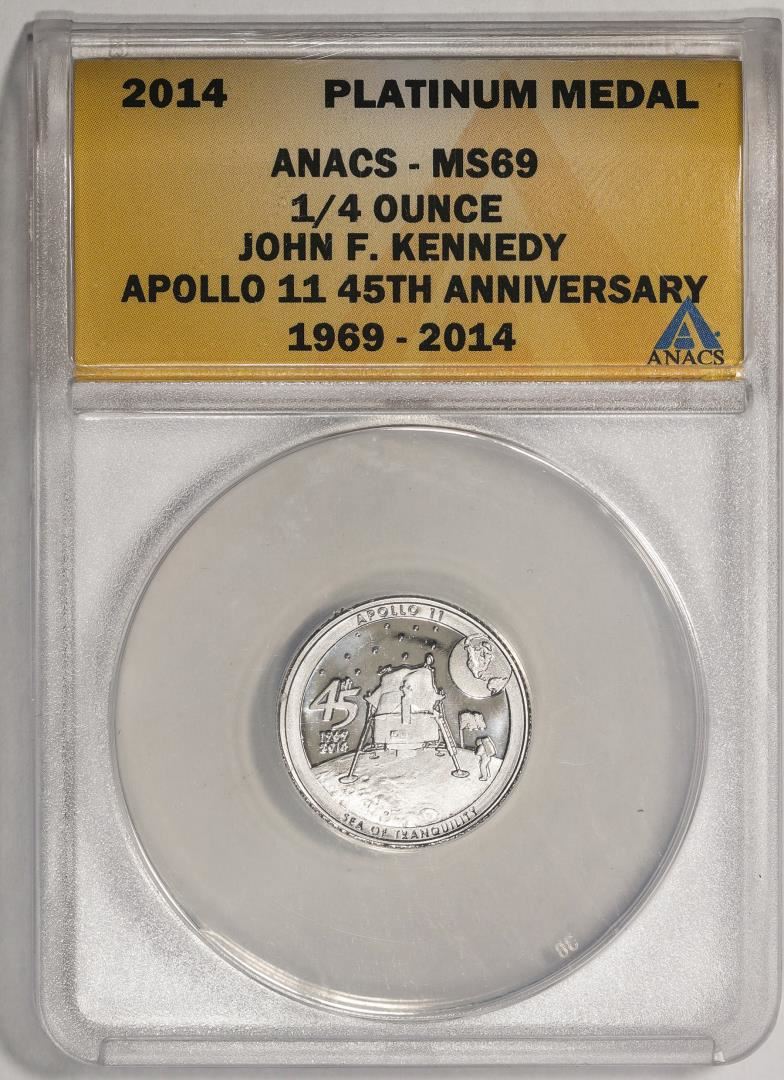 2014 Proof 1/4 oz Platinum JFK Apollo 11 Anniversary Medal ANACS MS69
