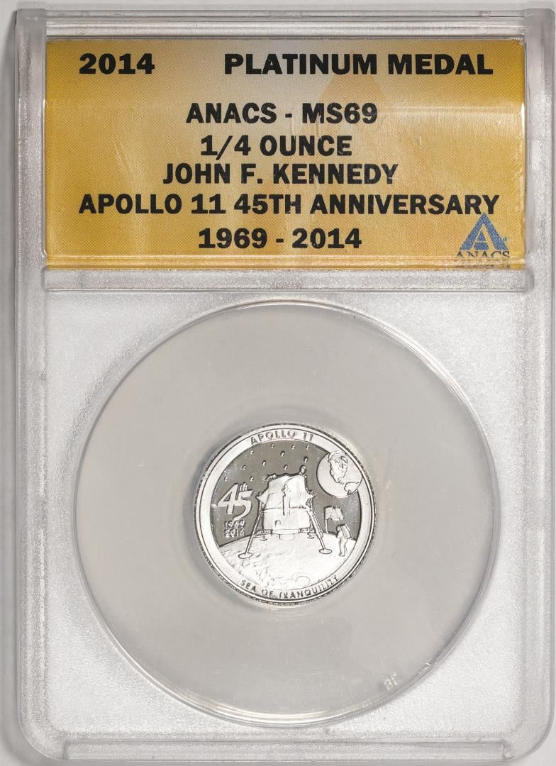 2014 Proof 1/4 oz Platinum JFK Apollo 11 Anniversary Medal ANACS MS69