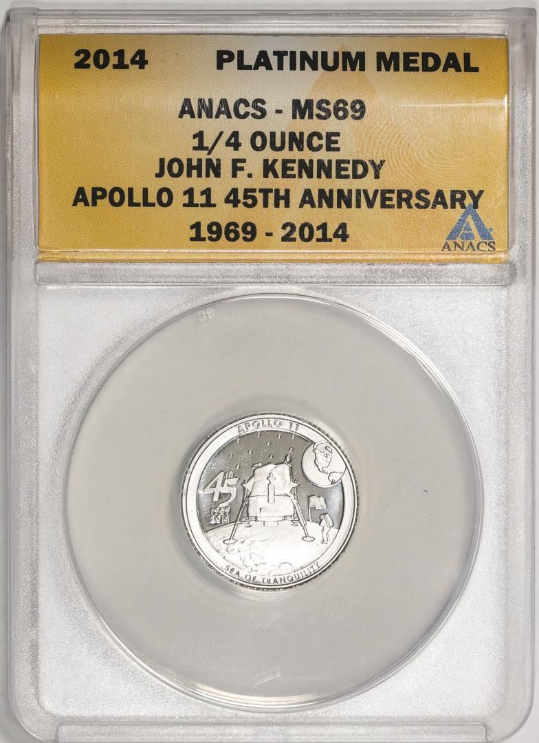 2014 Proof 1/4 oz Platinum JFK Apollo 11 Anniversary Medal ANACS MS69