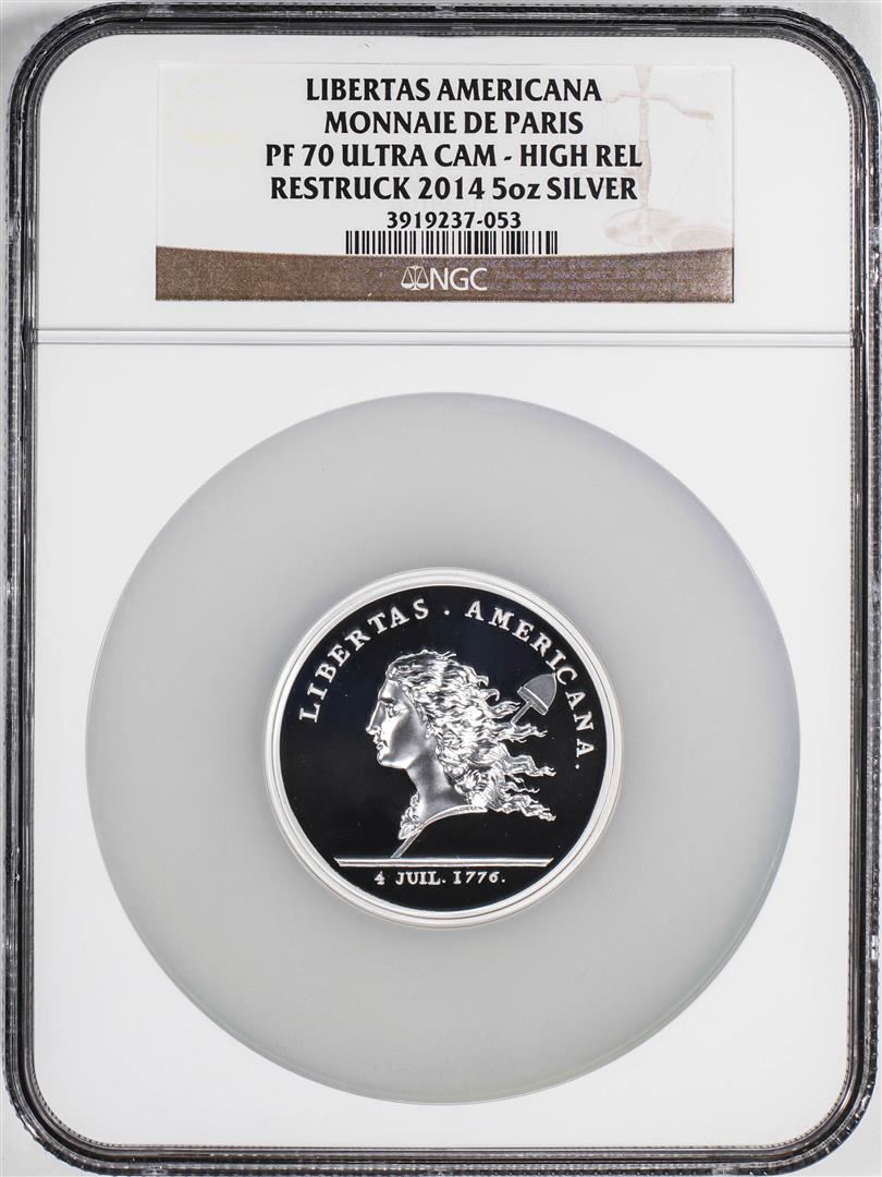 2014 Proof Libertas Americana Monnaie De Paris 5oz Silver Coin NGC PF70 Ultra Cam HR