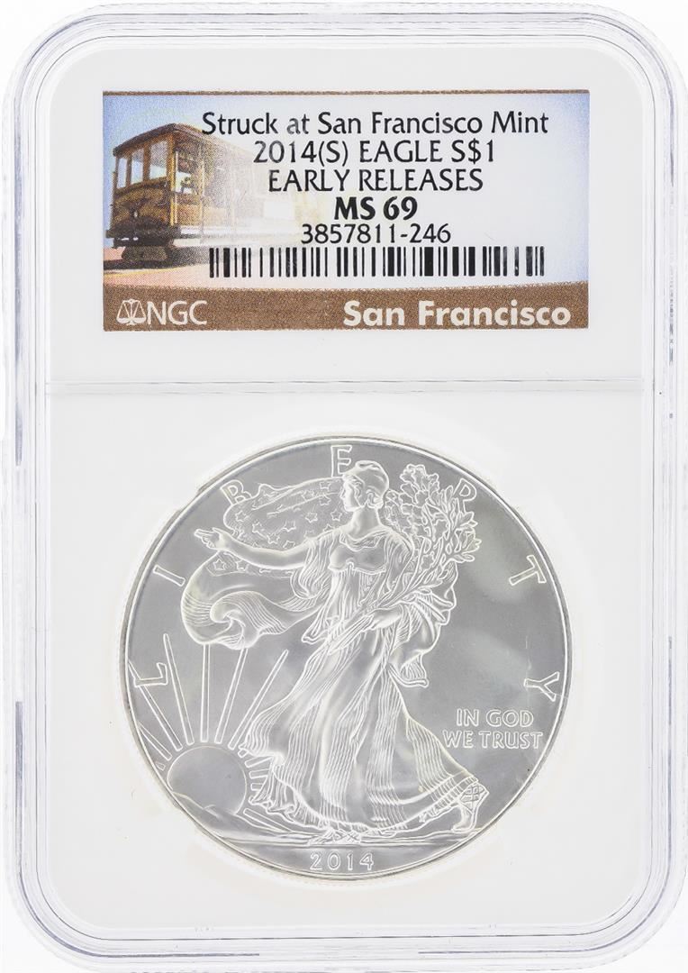 One 2014-S $1 American Silver Eagle Coin NGC Graded MS69. NGC Certified.