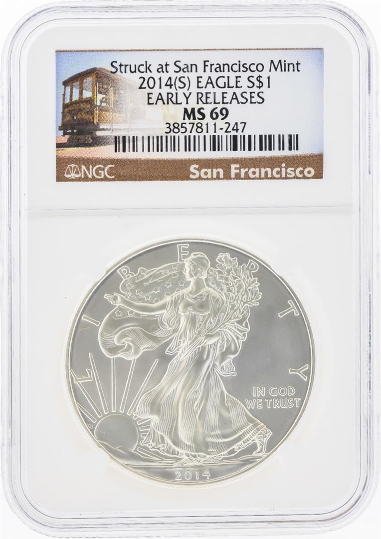 One 2014-S $1 American Silver Eagle Coin NGC Graded MS69. NGC Certified.