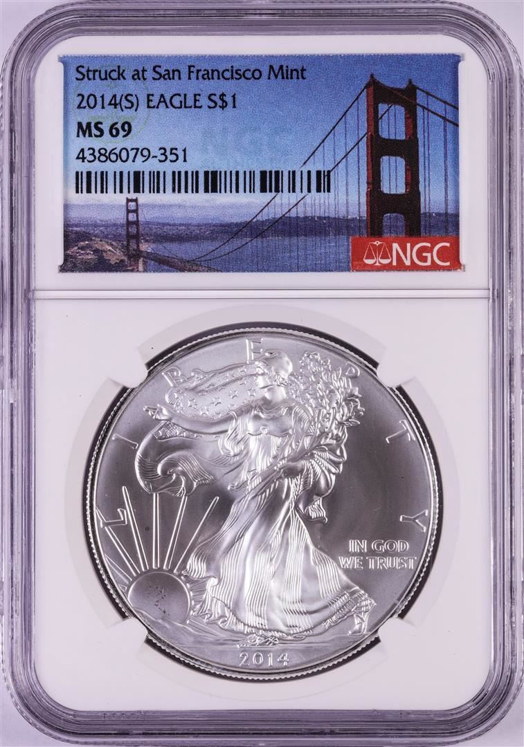 One 2014(S) $1 American Silver Eagle Coin NGC MS69 . NGC Certified.