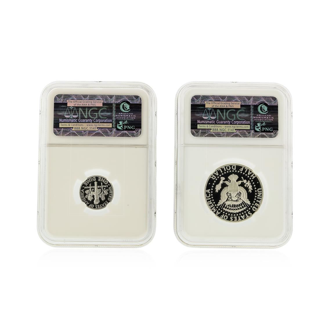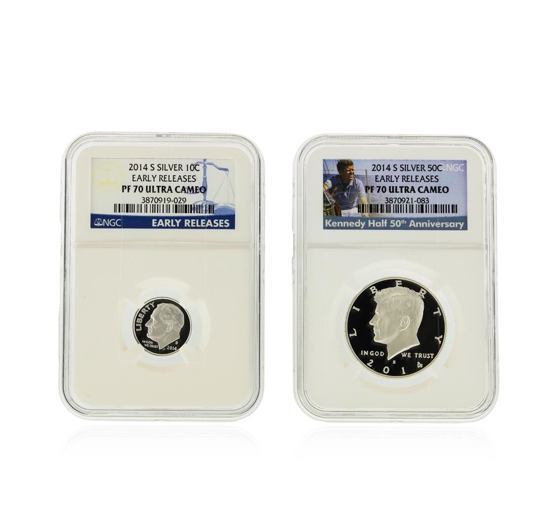 One 2014-S Dime & 2014-S Half Dollar Coins NGC PF70 Ultra Cameo. NGC Certified.