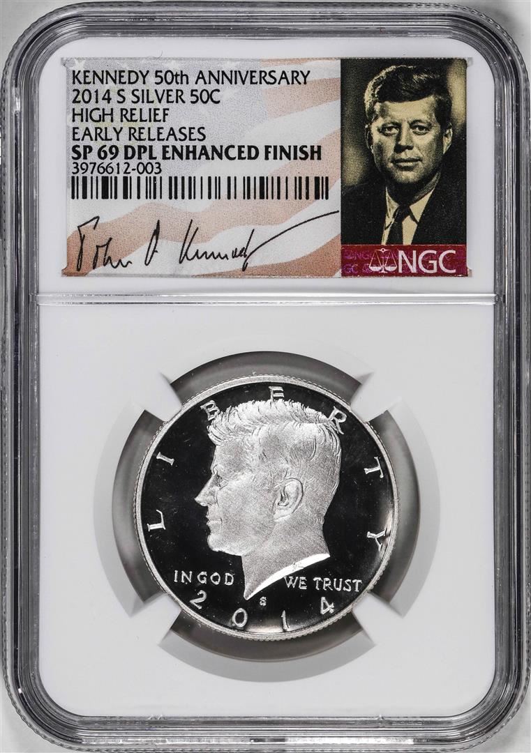 2014-S High Relief Kennedy Half Dollar Coin NGC SP69 DPL Enhanced Finish Kennedy Signed
