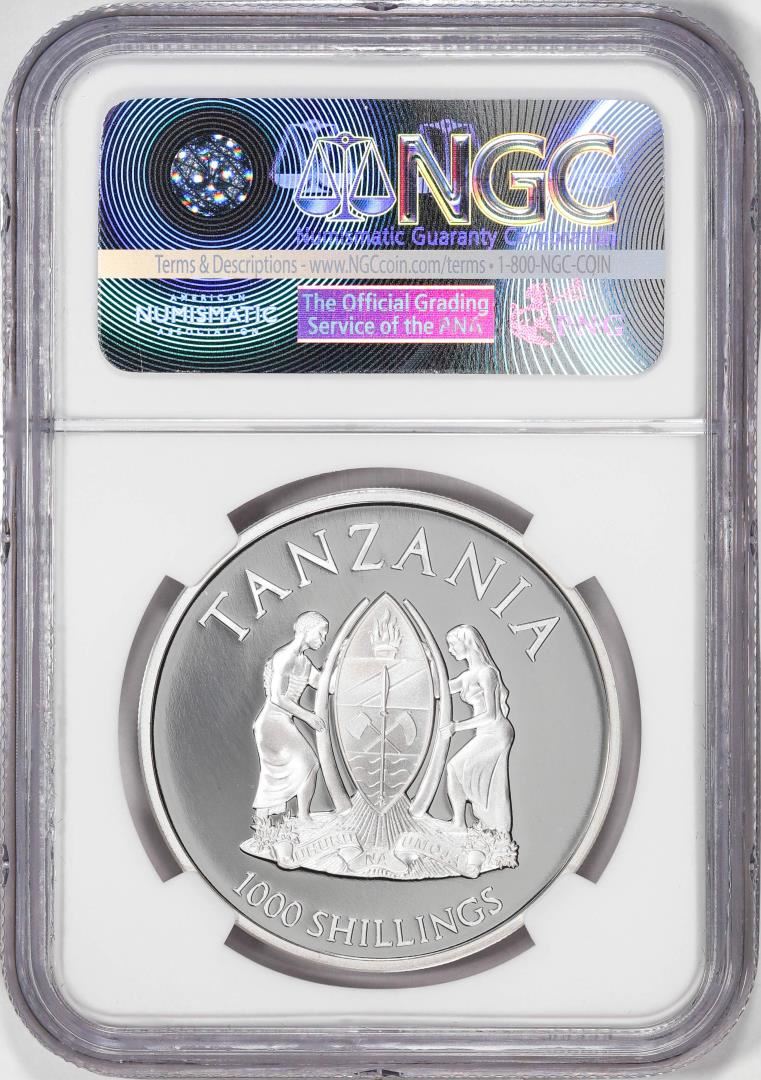 One 2014 Tanzania 1000 Shillings Serengeti Lion Big 5 HR Silver Coin NGC PF70 Ultra Cameo. NGC Certified.