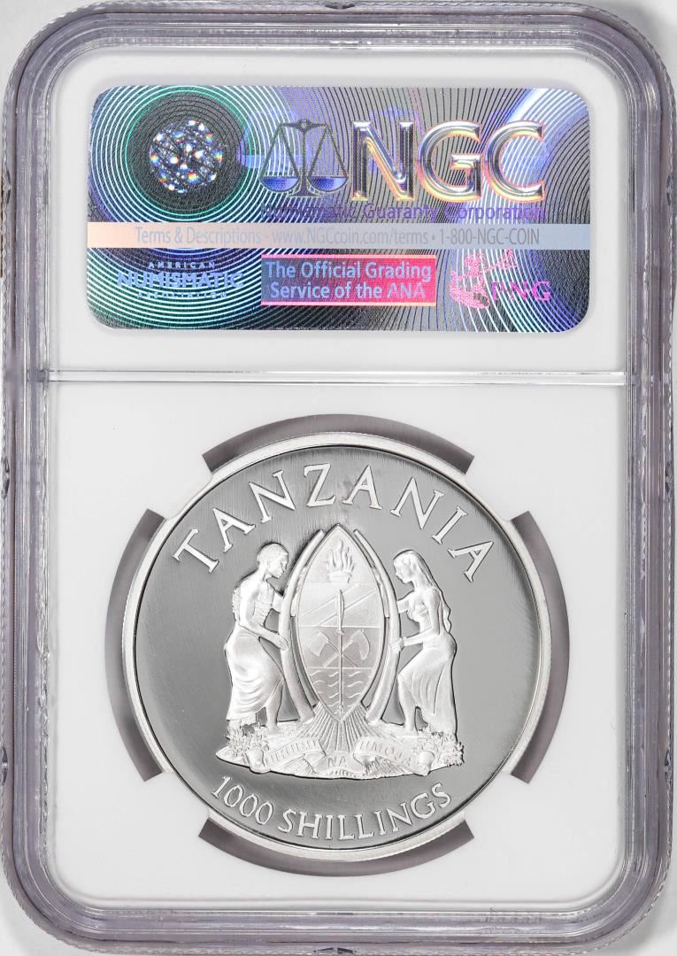 One 2014 Tanzania 1000 Shillings Serengeti Lion Big 5 HR Silver Coin NGC PF70 Ultra Cameo. NGC Certified.