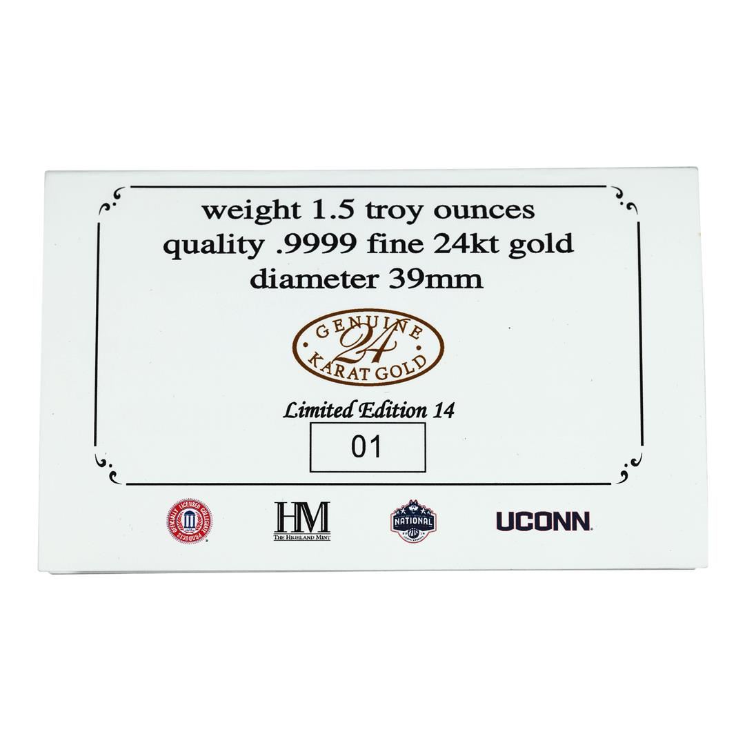 One 2014 UCONN Huskies National Champions 1.5 oz 24kt Gold Medal Limited Edition 1 of 14.