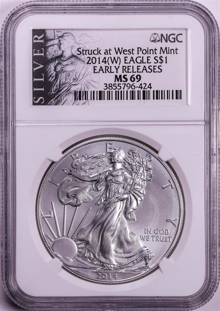 2014(W) $1 American Silver Eagle Coin NGC MS69 Early Releases West Point Mint