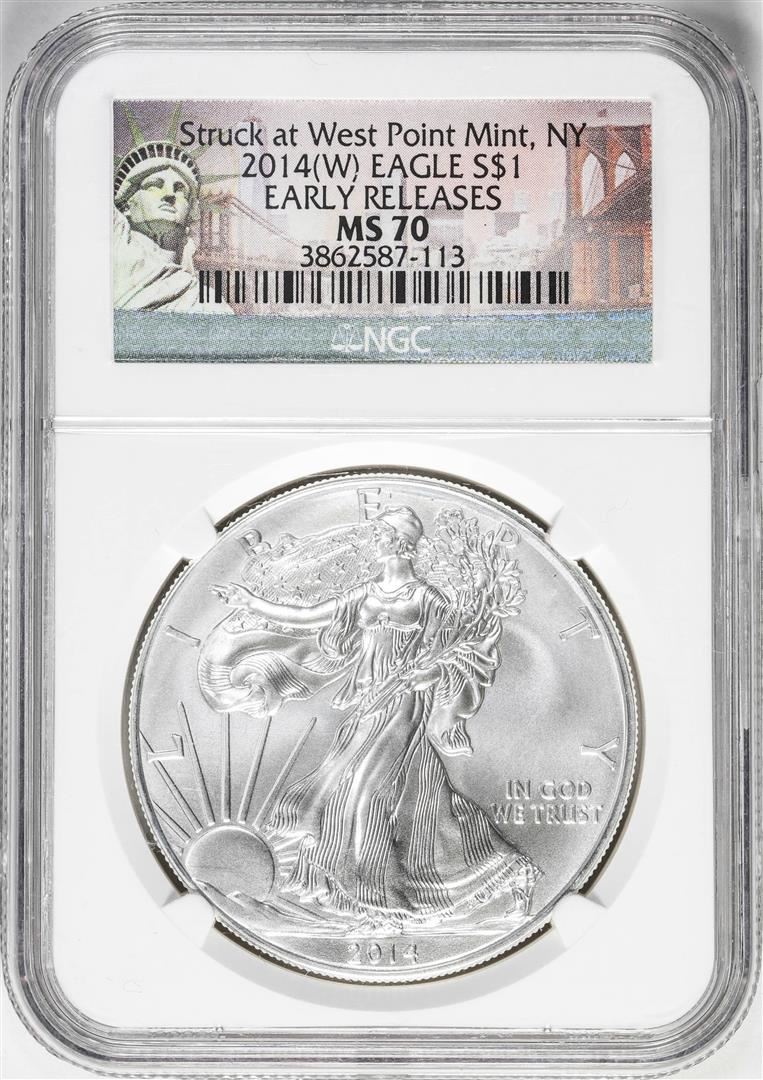 2014(W) $1 American Silver Eagle Coin NGC MS70 Early Releases West Point Mint