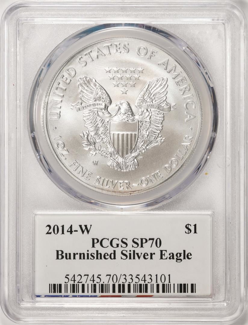 2014-W $1 Burnished American Silver Eagle Coin PCGS SP70 Edmund C. Moy Signature