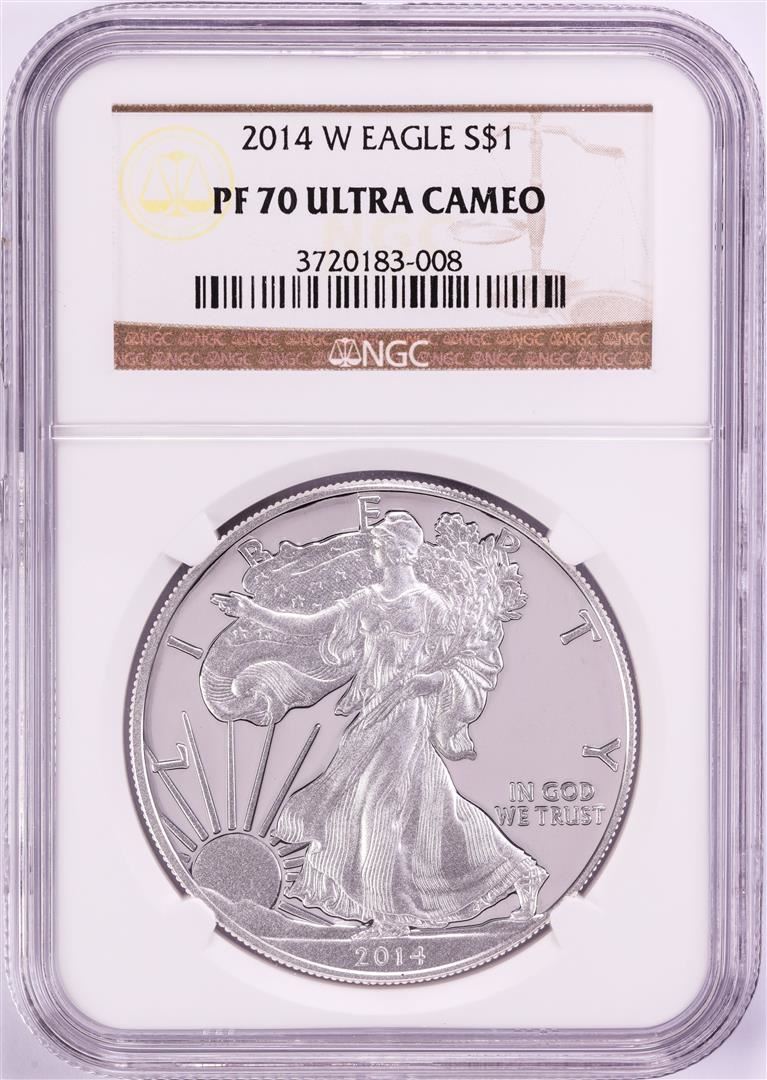 One 2014-W $1 Proof American Silver Eagle Coin NGC PF70 Ultra Cameo. NGC Certified.