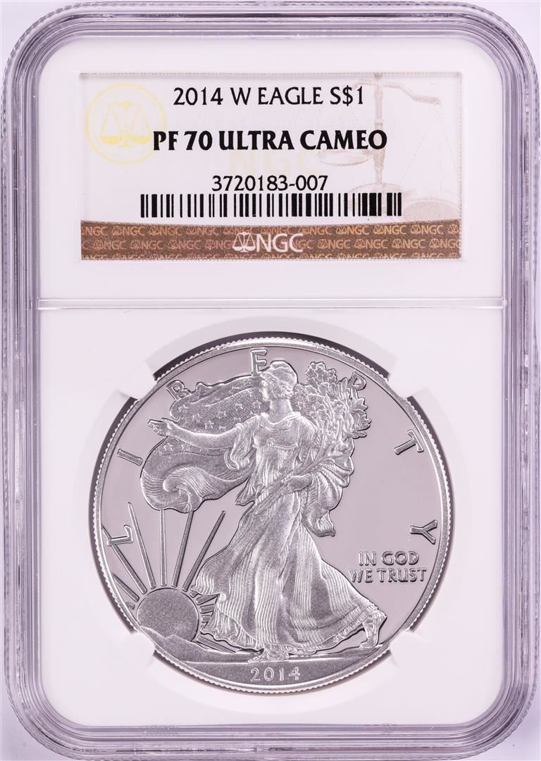 One 2014-W $1 Proof American Silver Eagle Coin NGC PF70 Ultra Cameo. NGC Certified.