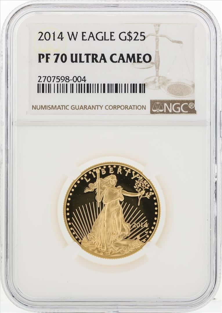 One 2014-W $25 American Eagle Gold Coin NGC PF70 Ultra Cameo. NGC Certified.