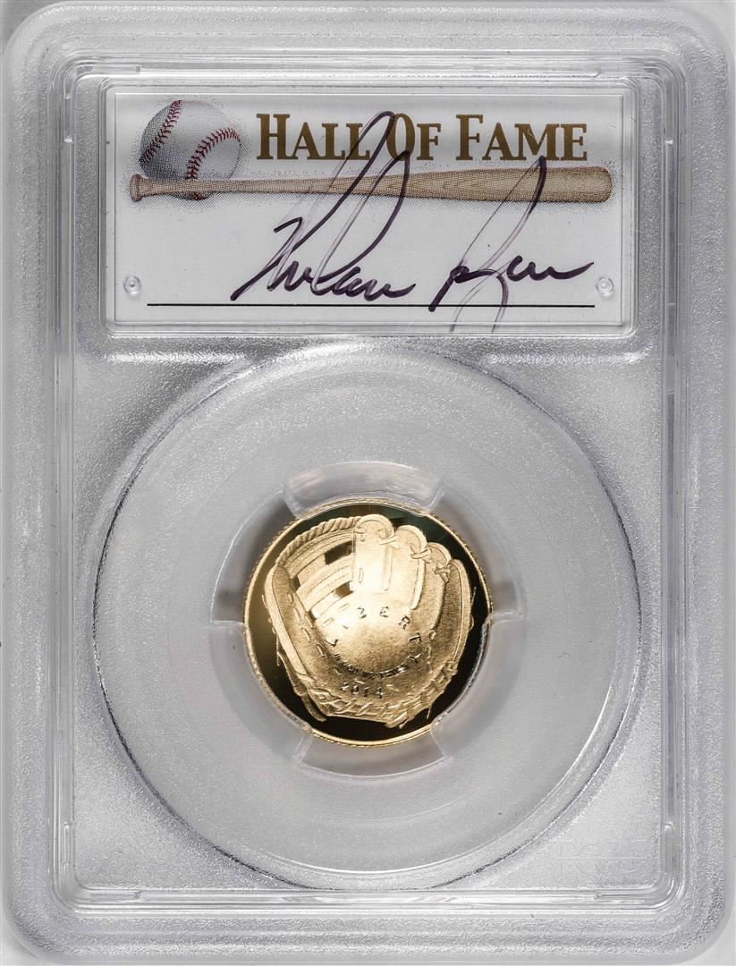 One 2014-W $5 Proof Baseball Hall of Fame Gold Coin PCGS PR70DCAM Nolan Ryan Signature. PCGS Graded.