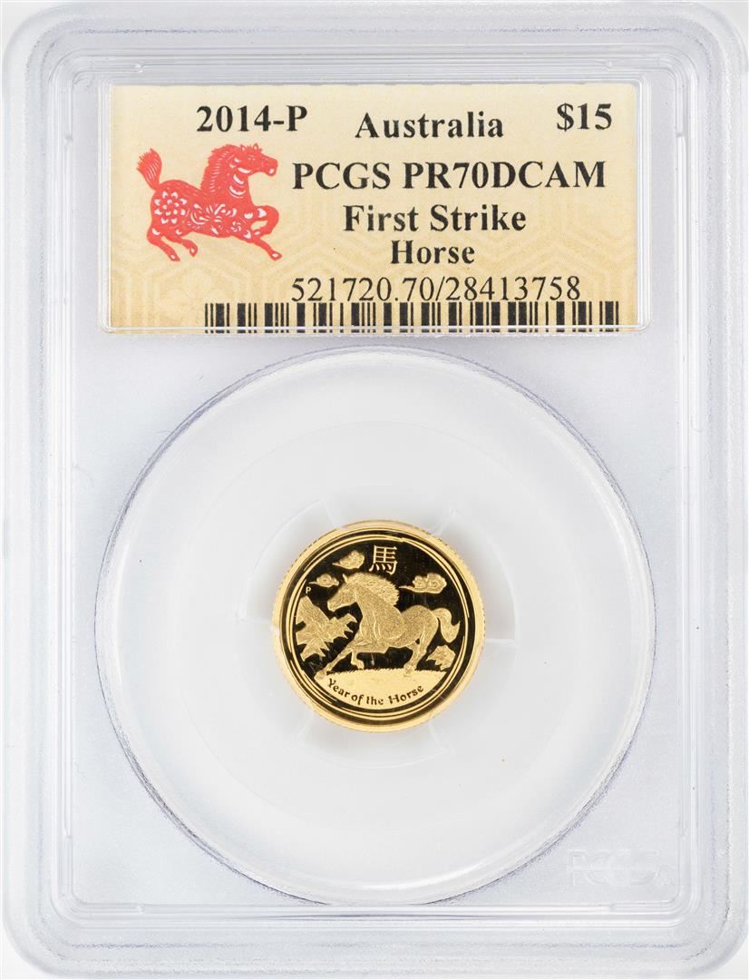 One 2014P $15 Proof Australia Horse Gold Coin PCGS PR70DCAM First Strike. PCGS Graded.