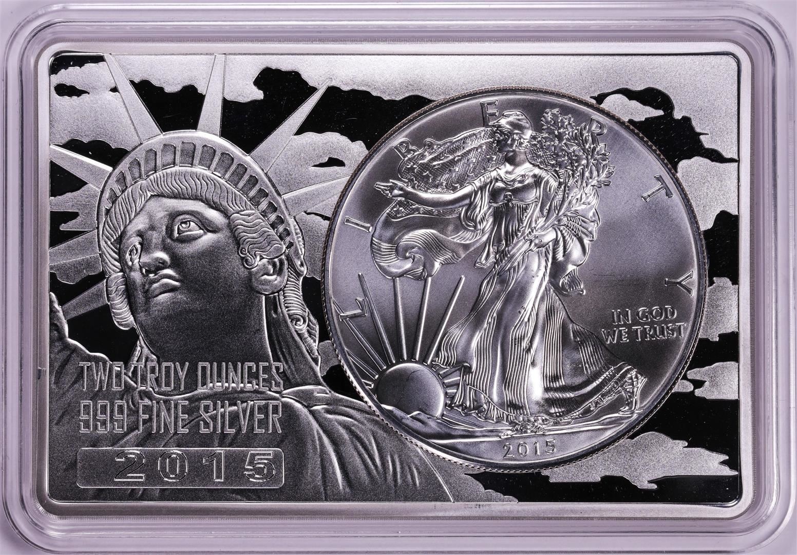 One 2015 $1 American Silver Eagle Coin & 2oz Silver Bar Set.