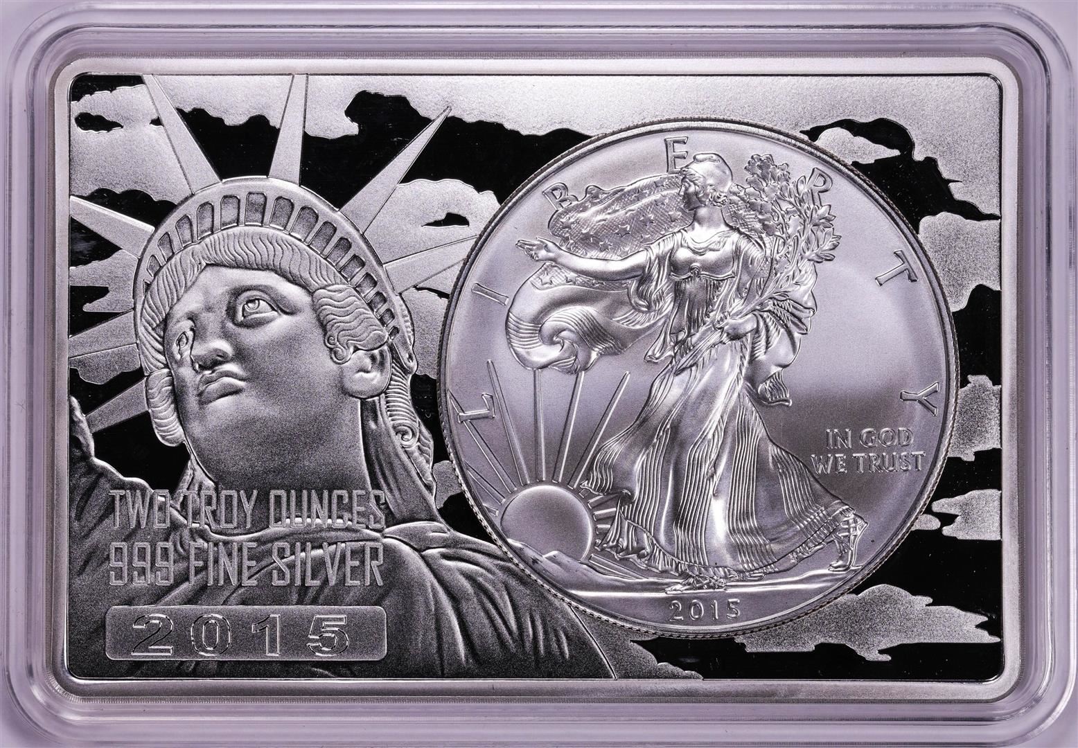One 2015 $1 American Silver Eagle Coin & 2oz Silver Bar Set.
