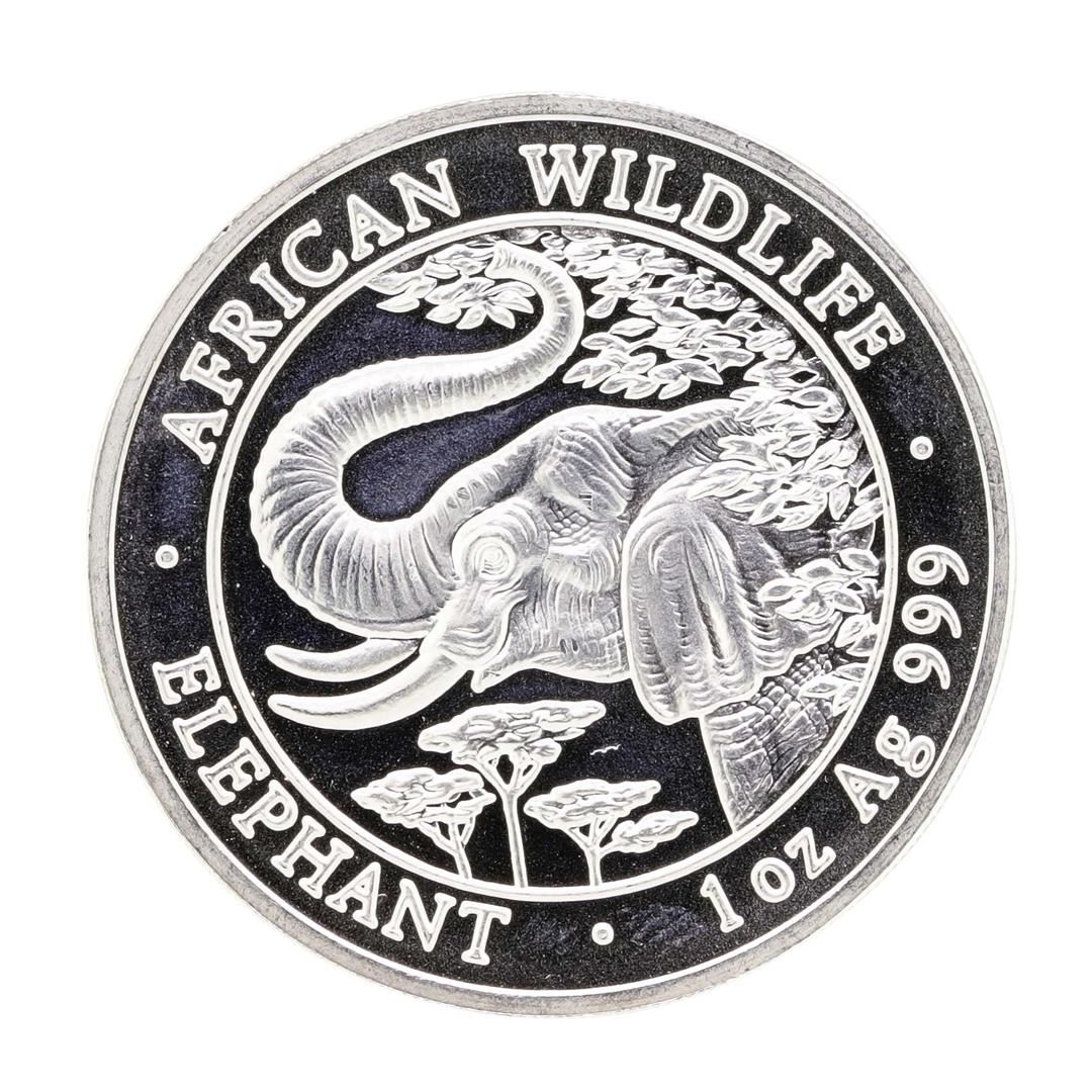 One 2015 1 oz. Silver Somalian African Elephant Coin.