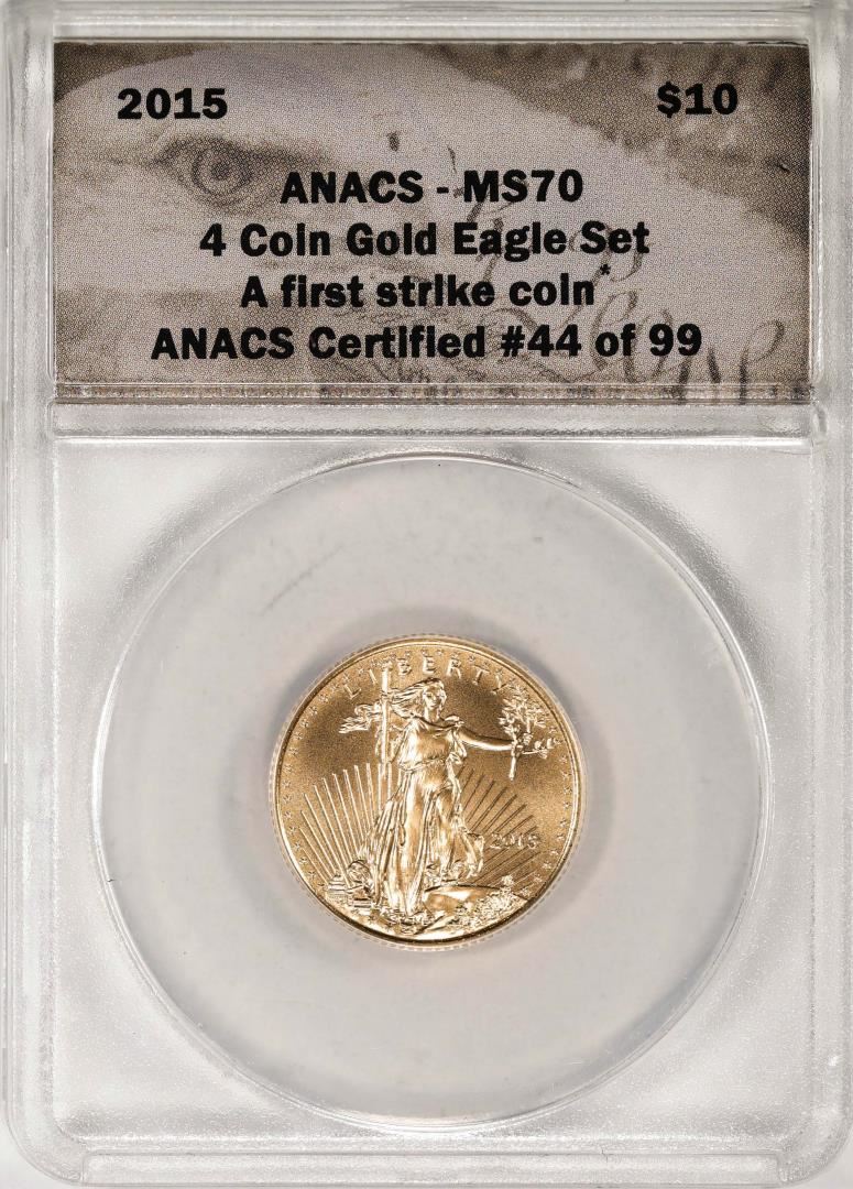 2015 $10 American Gold Eagle Coin ANACS MS70 First Strike
