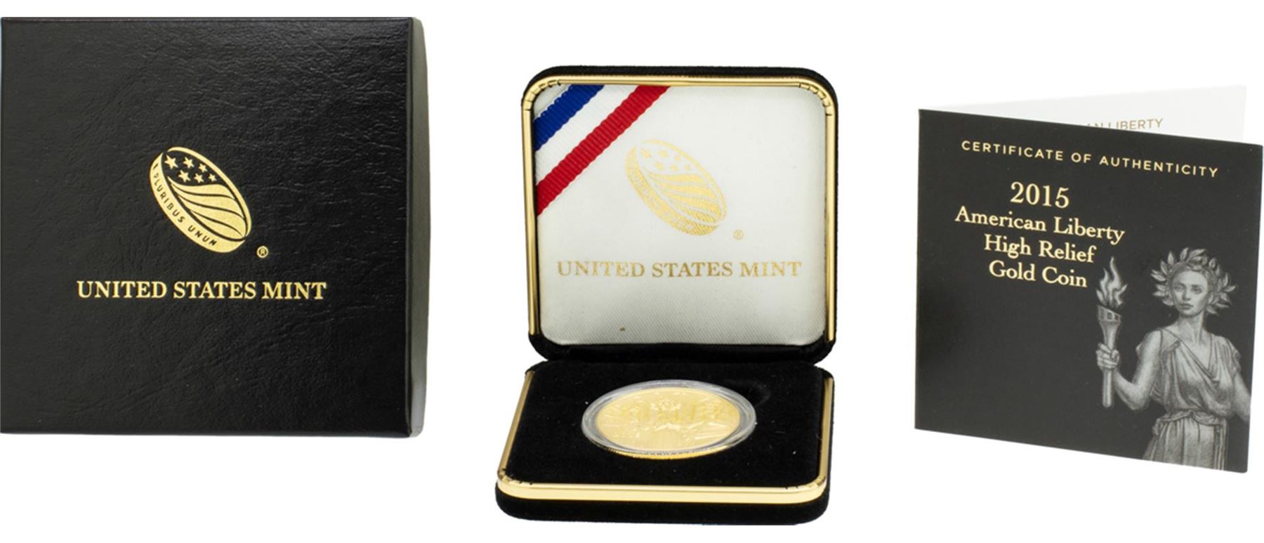 One 2015 $100 American Liberty High Relief Gold Coin w/ Box & COA.