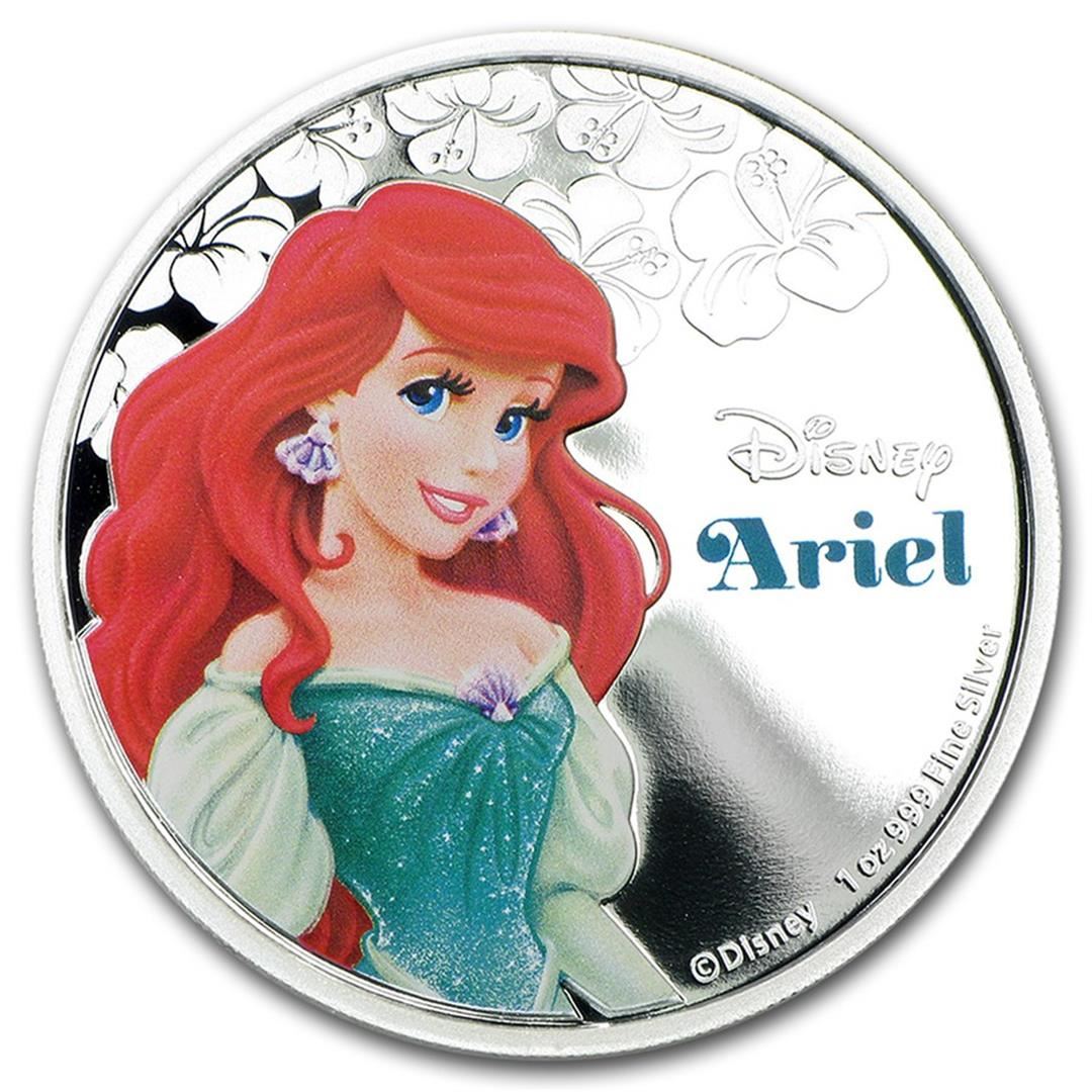 One 2015 $2 Disney Princess Ariel .999 Fine Silver Proof Coin.