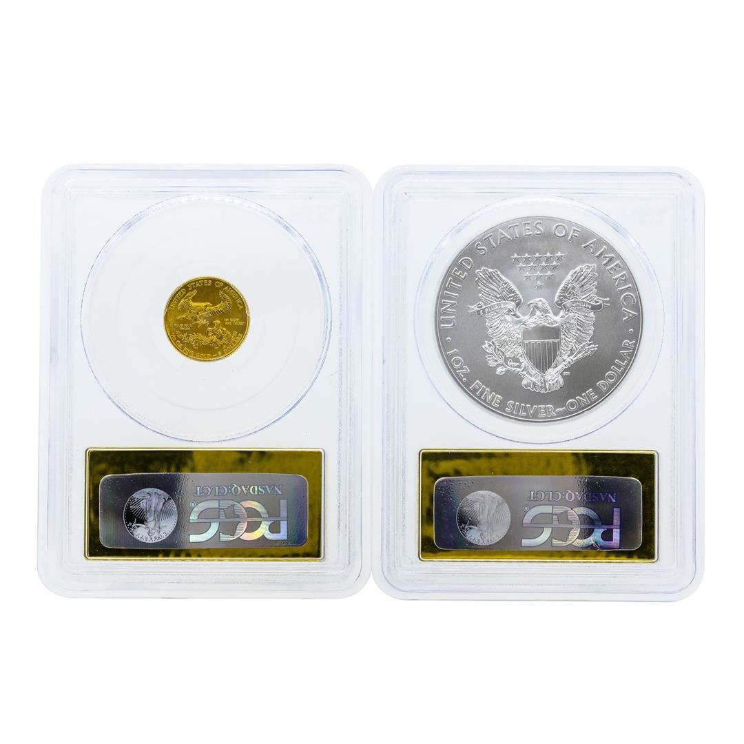 2015 $5 American Gold Eagle & 2015-W $1 American Silver Eagle Coins PCGS MS70