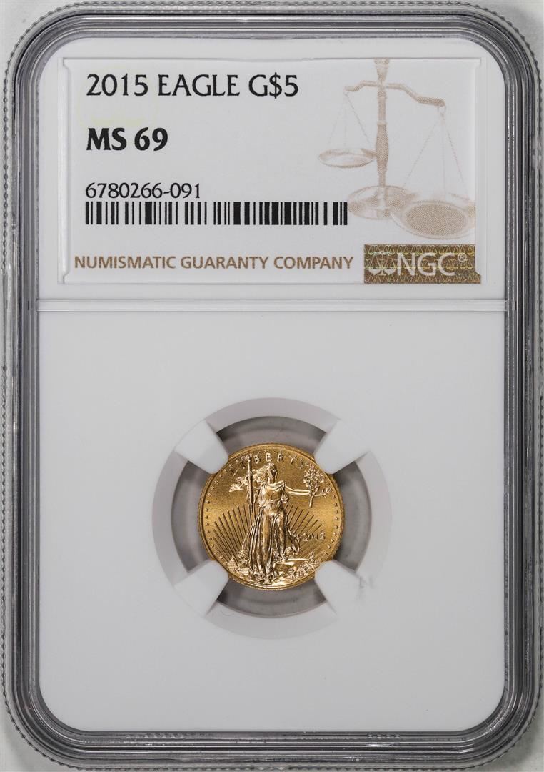 One 2015 $5 American Gold Eagle Coin NGC MS69. NGC Certified.