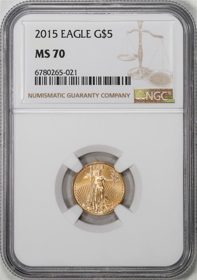 One 2015 $5 American Gold Eagle Coin NGC MS70. NGC Certified.