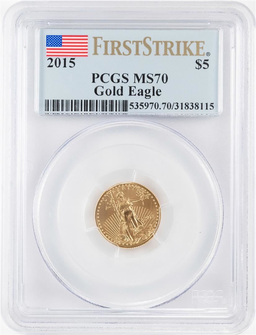 One 2015 $5 American Gold Eagle Coin PCGS MS70 First Strike. PCGS Graded.