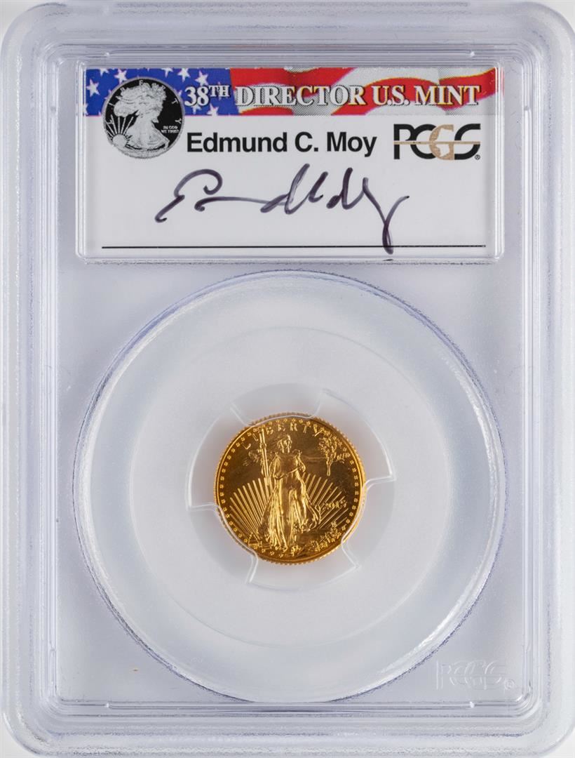 One 2015 $5 Wide Reeds American Gold Eagle Coin PCGS MS70 Moy Signature First Strike. PCGS Graded.