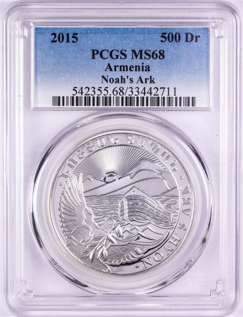 One 2015 Armenia 500 Dram Noah's Ark Silver Coin PCGS MS68. PCGS Graded.