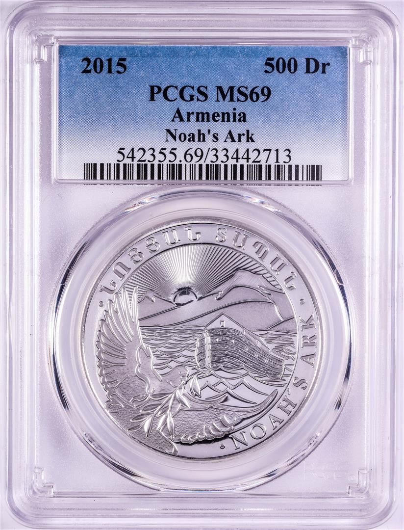 One 2015 Armenia 500 Dram Noah's Ark Silver Coin PCGS MS69. PCGS Graded.