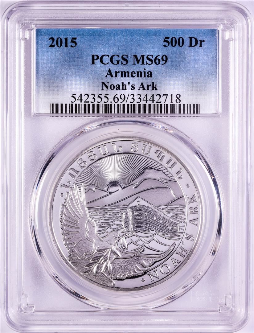 One 2015 Armenia 500 Dram Noah's Ark Silver Coin PCGS MS69. PCGS Graded.