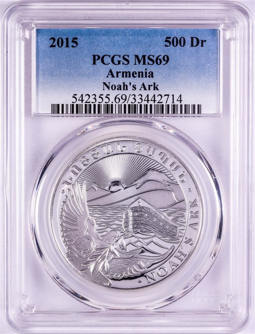 One 2015 Armenia 500 Dram Noah's Ark Silver Coin PCGS MS69. PCGS Graded.